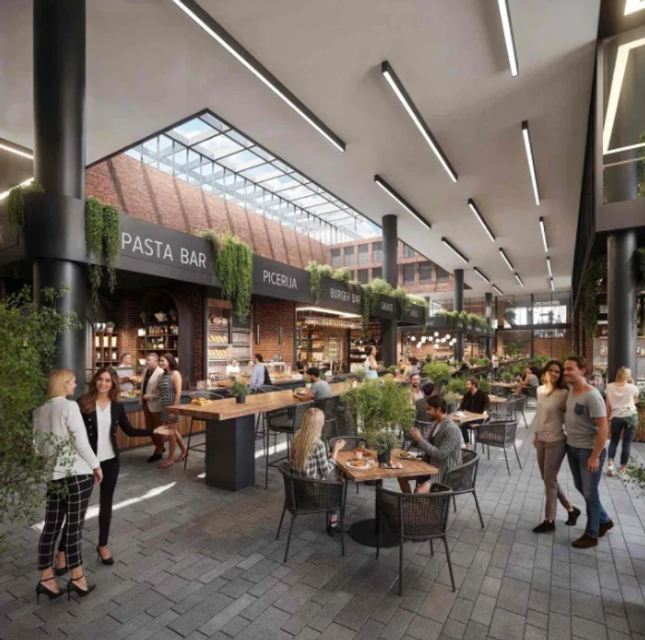 Iznad mnoštva tezgi, prodavnica, kafića i restorana, naći će se ozelenjena krovna terasa od 1.800 kvadrata.