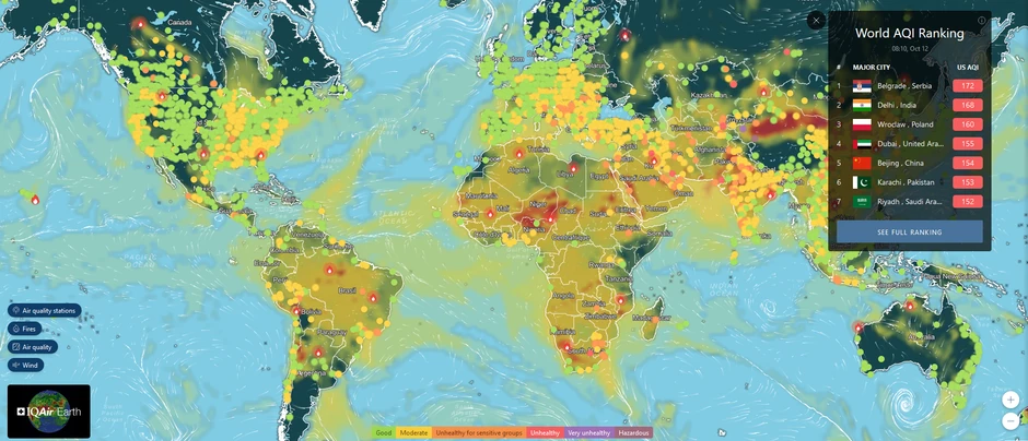Beograd je ponovo zauzeo neslavno prvo mesto na listi najzagađenijih gradova na svetu ovog jutra, podaci su aplikacije "IQ Air".