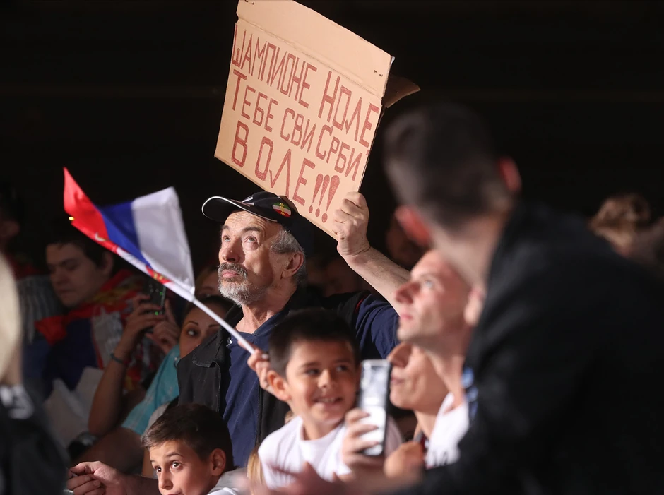 Publika ga dočekala gromoglasnim ovacijama i povicima "Nole, Nole". Ispaljen i vatromet u njegovu čast.