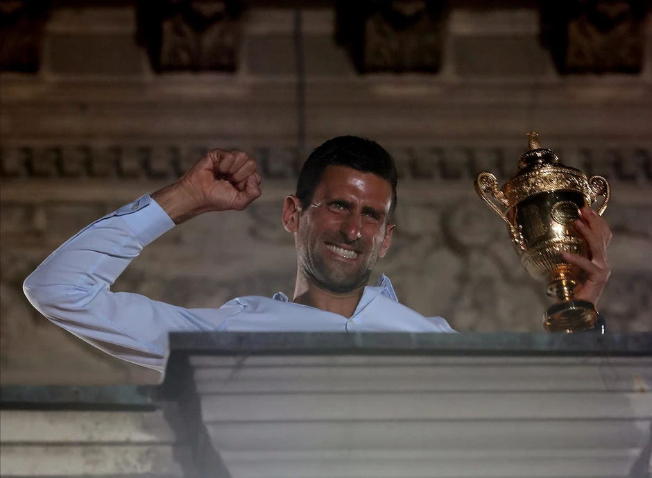 Srpski teniser Novak Đoković na Vimbldonu je osvojio je 21. grend slem, a posle nove titule u Londonu, doputovao je u Beograd gde mu je priređen doček ispred Starog dvora u Beogradu.