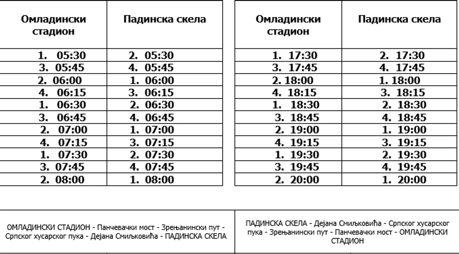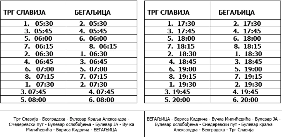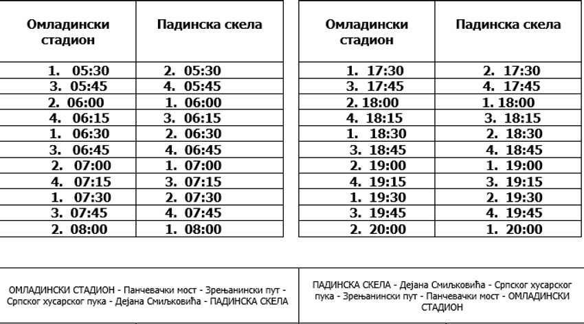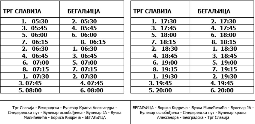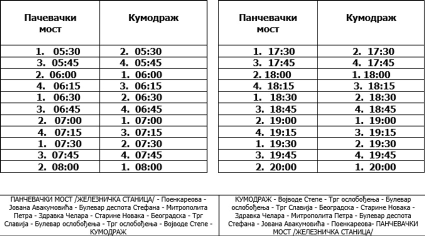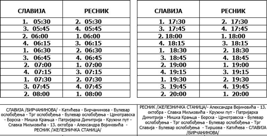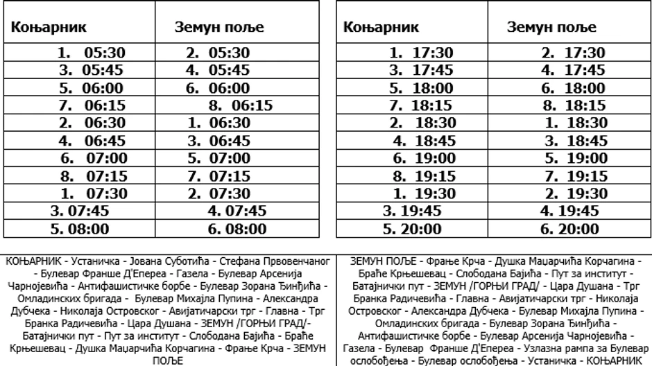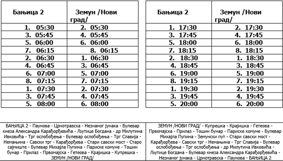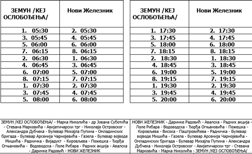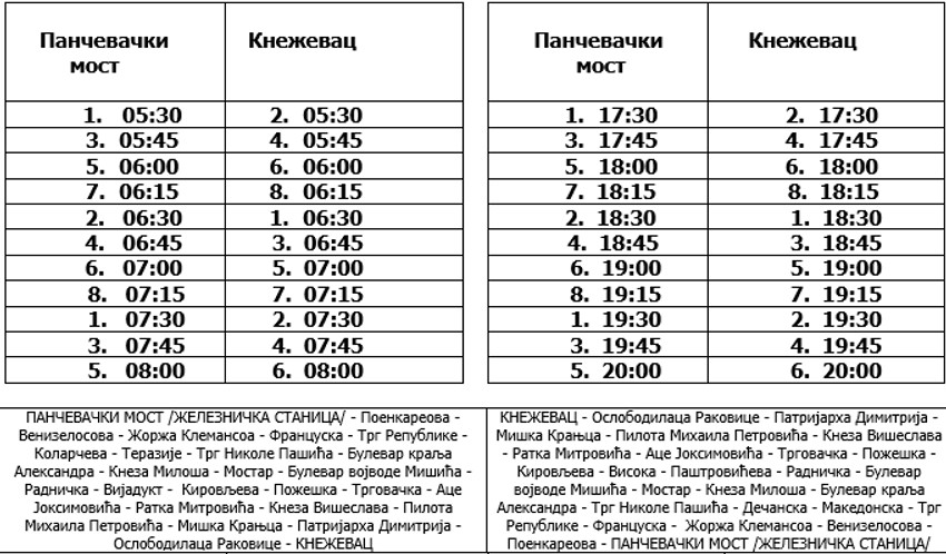Dakle, prepodne će autobusi kretati na svim linijama u 5.30, 5.45, 6.00, 6.15, 6.30, 6.45, 7.00, 7.15, 7.30, 7.45, 8.00, i to iz oba pravca. Popodne sa polaznih stanica polaziće u 17.30, 17.45, 18.00, 18.15, 18.30, 18.45, 19.00, 19.15, 19.30, 19.45, 20.00.