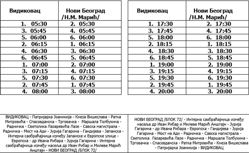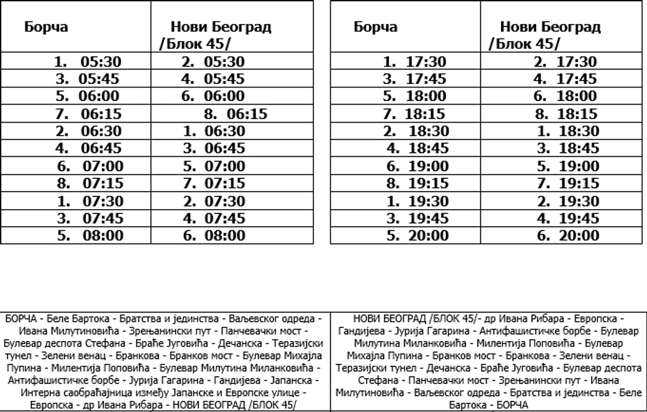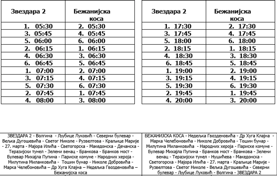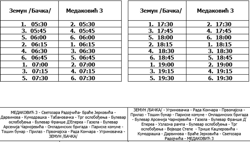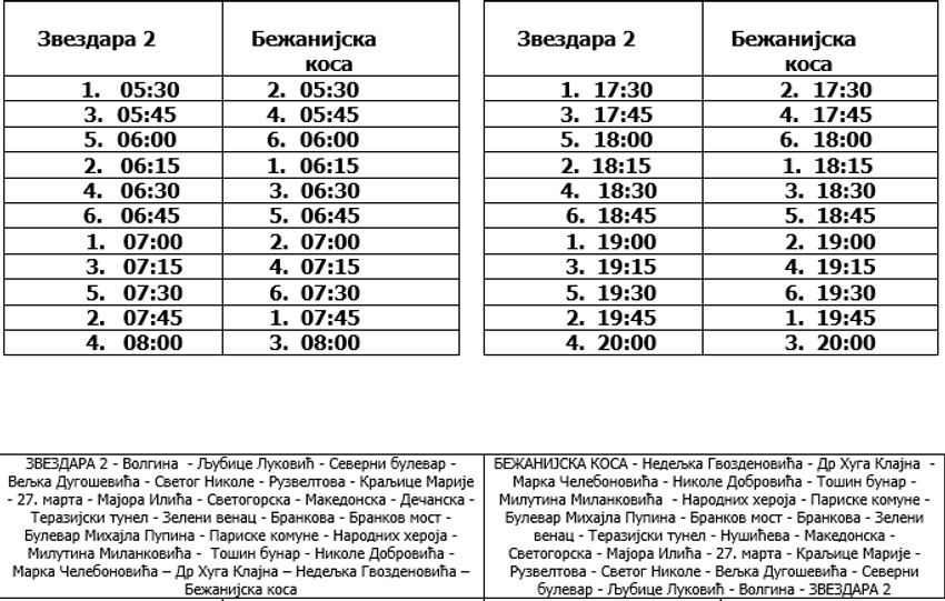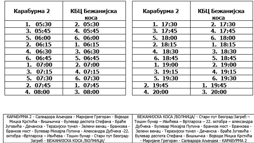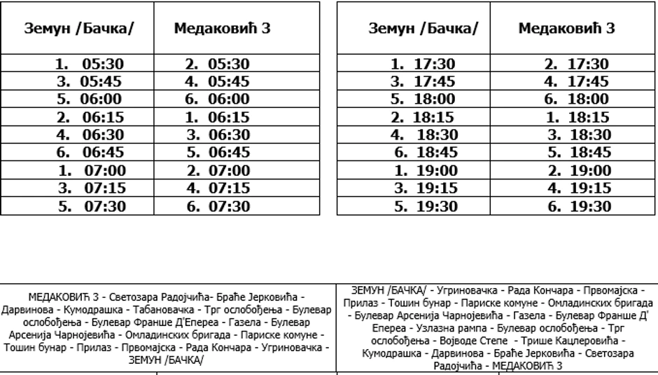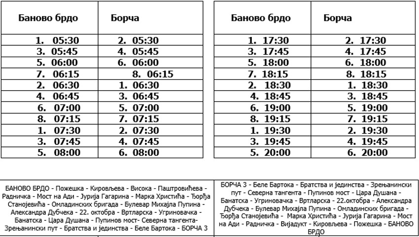Autobuske linije neće saobraćati tokom celog dana, već praktično u dva špica: od 5.30 do 8.00 i od 17.30 do 20.00, sa polascima na svakih 15 minuta.