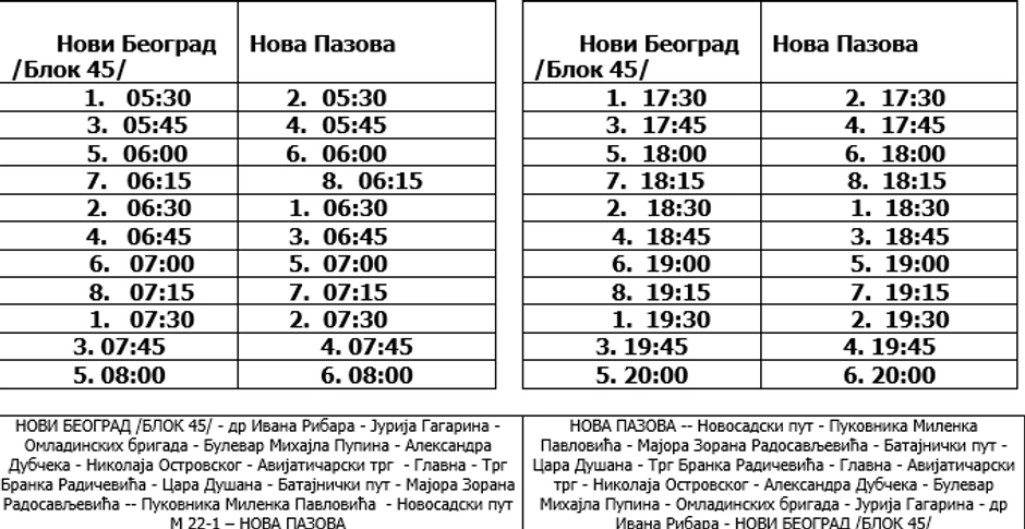L20: Novi Beograd (Blok 45) - Nova Pazova
