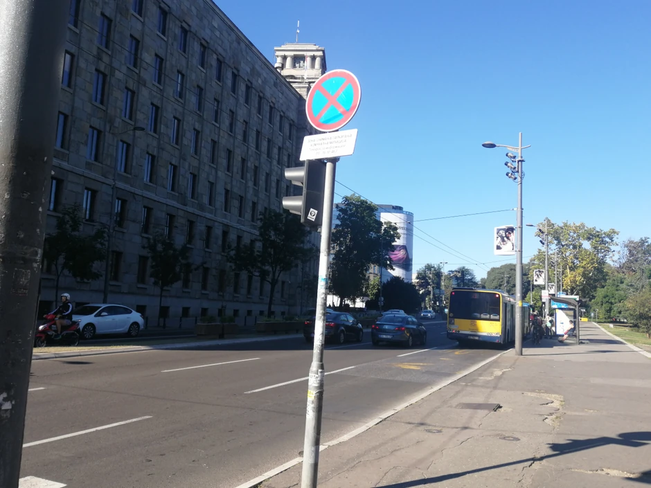 "Zona snimanja parkiranja. Komunalna milicija. Telefon za informacije...".