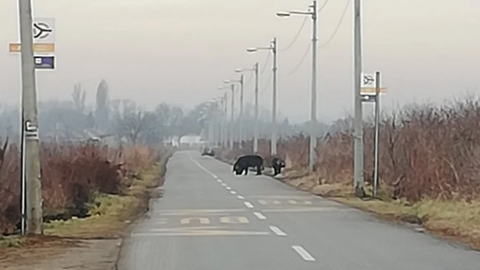 Naime, u jednom trenutku su se potpuno neočekivano iz obližnjeg šumarka pojavile dve divlje svinje, prvo krenule da prelaze kolovoz, a onda kao da su se predomislile pa su zastale na autobuskom stajalištu linije 104, samo u suprotnom smeru.