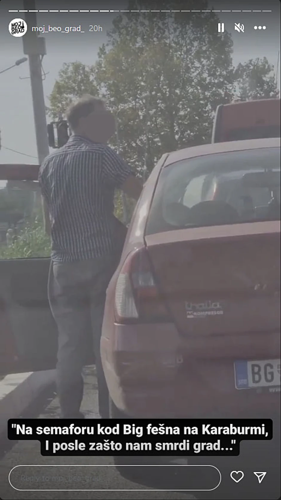 - Na semaforu kod tržnog centra na Karaburmi. I posle se pitamo zašto nam smrdi grad - navodi se u opisu ovog video-zapisa.