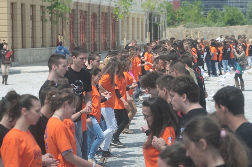 Oko 200 maturanata iz Beograda plesalo je danas u tematskom parku "Terazije iz tridesetih" u Novom Beogradu, u okviru manifestacije "Ples sa Evropom".