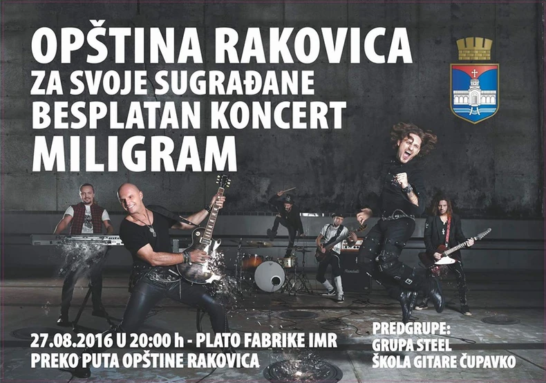 Naredne subote 27. avgusta, na prostoru platoa fabrike IMR, prekoputa zgrade opštine, biće održan besplatni koncert popularne grupe "Miligram".