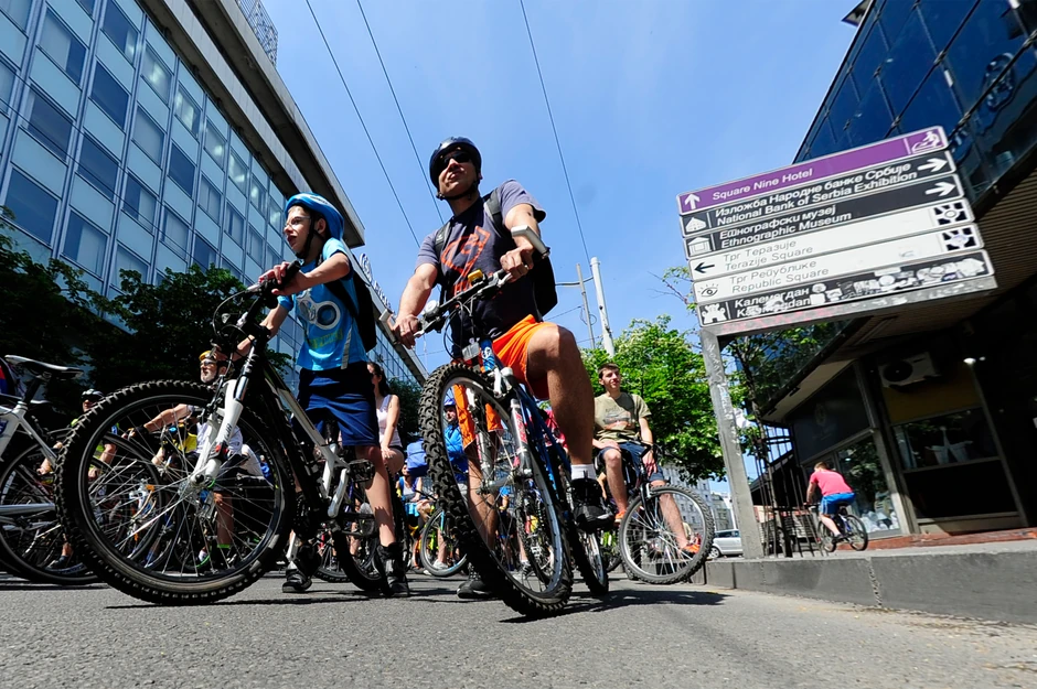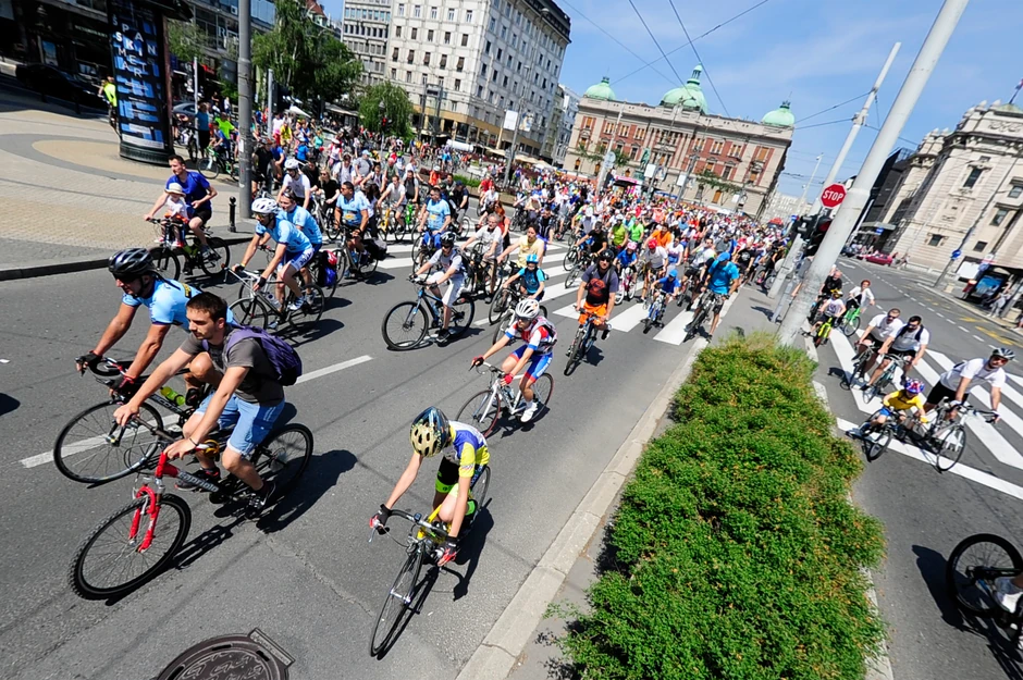 Uz komešanje na kolovozu i trotoarima, ali i nestrpljivo ograšavanje trubama i zvončićima na vozilima, biciklisti su nešto pre 11.00 zauzeli startnu poziciju u Makedonskoj ulici odakle su se dalje uputili Dečanskom, Terazijskim tunelom, pa do Brankovog mosta. Dalja trasa kolone proteže se Bulevarom Mihajla Pupina, ulicama Omladinskih brigada i Jurija Gagarina, preko Mosta na Adi pa sve do "beogradskog mora", gde ciljna tačka rekreativce čeka na sportskim terenima.