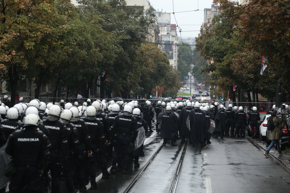 Najmanje 10 policajaca lakše je povrđeno danas na ulicama Beograda, dok je oštećeno pet vozila intervente jedinice MUP-a.