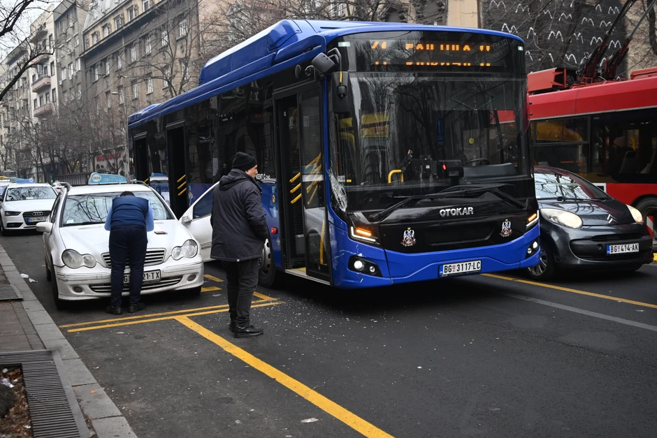 Kako saznajemo, vozač taksija udario je u gradski autobus tako što je otvorio vrata svog vozila, i tom prilikom oštećena deo autobusa gradskog prevoza.