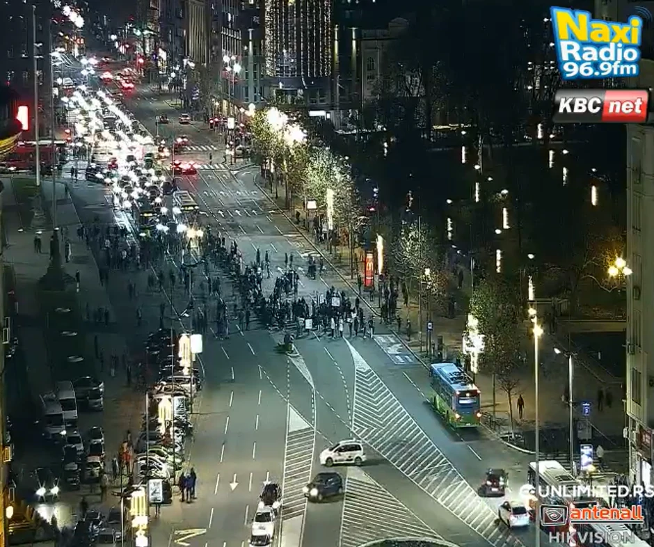 Kako se može videti na Naxi kamerama, grupa ljudi blokirala je saobraćaj u oba pravca, i ka centru garda i ka Bulevaru kralja Aleksandra.