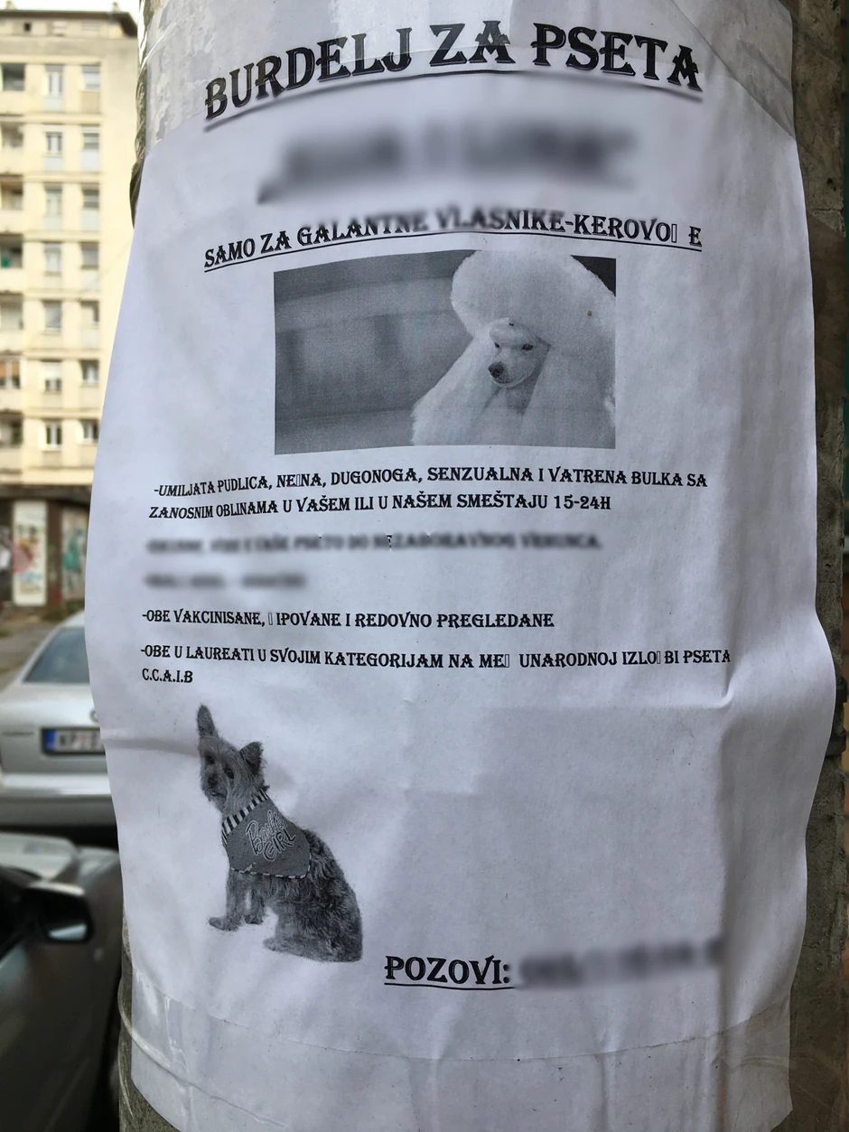 "Burdelj za pseta" , samo za galantne vlasnike pseta. Ne, u ovoj rečenici baš nema nikakve šale, ovo je oglas koji je ovog jutra osvanuo na Vračaru.