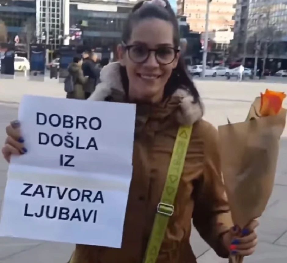 Branislav Mirković iz Beograda postao je zvezda interneta kada je u sredu uveče na društvenim mrežama osvanuo njegov snimak na kojem drži plakat sa porukom" Dobrodošla iz zatvora, ljubavi" i čeka svoju Keku na Trgu republike.