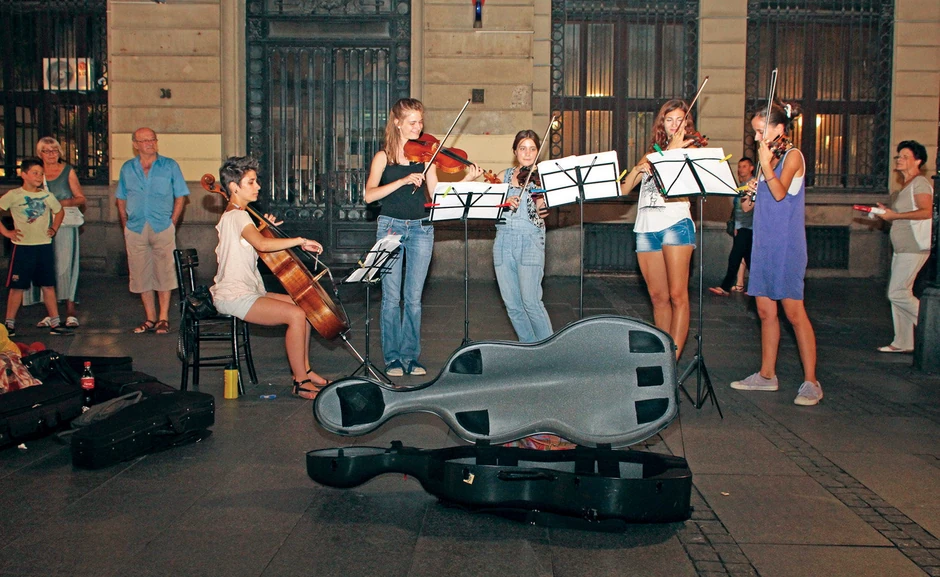 - Klasična muzika zaslužuje da bude slušana i sviranjem u Knez Mihailovoj tome doprinosimo. Razočaravajuće je da na naše koncerte koje nam organizuje akademija i za koje mi mesecima vežbamo ponekad dođe i dvoje ili troje ljudi. Zato smo ovde, da klasičnu muziku popularizujemo. Izvodimo Mocarta, Vivaldija, ali i filmsku muziku, tako da se neretko prolaznici oduševe kad čuju muziku iz filma "Pirati sa Kariba". U repertoar uvek uvrstimo i neku domaću pesmu kao što je "Jovano, Jovanke". Ljudi ovde super reaguju na nas, a najmlađi su baš oduševljeni - priča Slađan Cvejić, jedan od članova ansambla "Infernare" koji svakog dana nastupa na pločnicima Kneza.