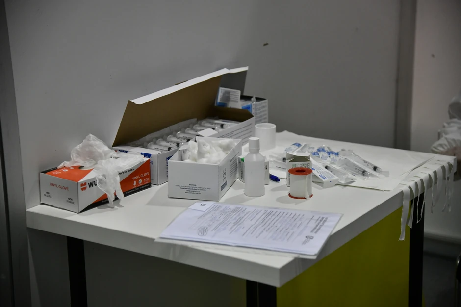 Velika hala u okviru Beogradskog sajma bila je podeljena na nekoliko zona. U prvoj zonu svima koji su došli da prime vakcina prvo se merila temperatura i dezinfikovale su se ruke.