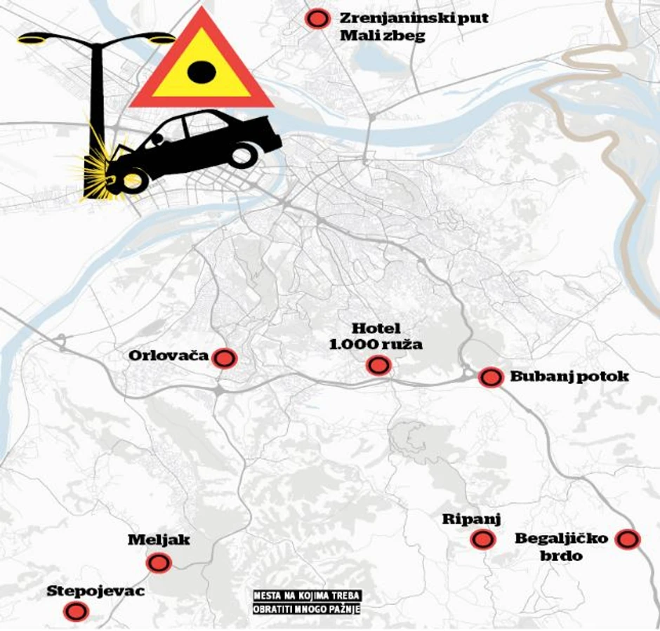 Groblje Orlovača, Begaljičko brdo, kao i raskrsnica kod motela "1.000 ruža" na Kružnom putu, samo su neke od crnih tački koje mogu da budu kobne pri povratku Beograđana sa odmora.