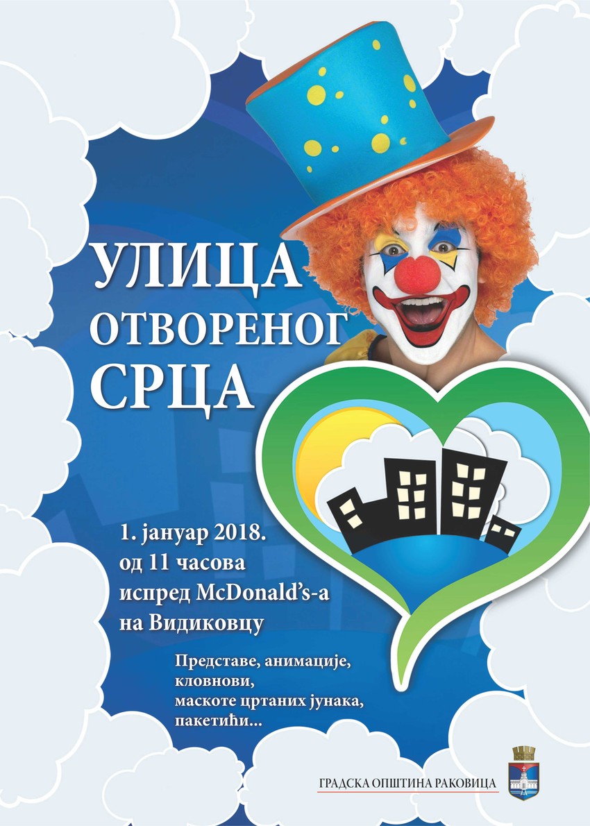 "Ulica otvorenog srca" 1. januara 2018. godine postaće "ulica crvenih noseva" jer je i ove godine posvećena projektu "Doktori klovnovi". Ovi neobični doktori pomažu mališanima da lakše podnesu boravak u bolnicama, a posetioci manifestacije će kupovinom i nošenjem klovnovskog crvenog nosa učestovati u humanitarnoj akciji.