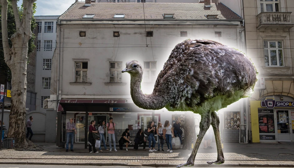Na društvenim mrežama pojavile su se fotografije, kako se svima u prvi mah učihlo - noja kako šeta centrom Beograda.