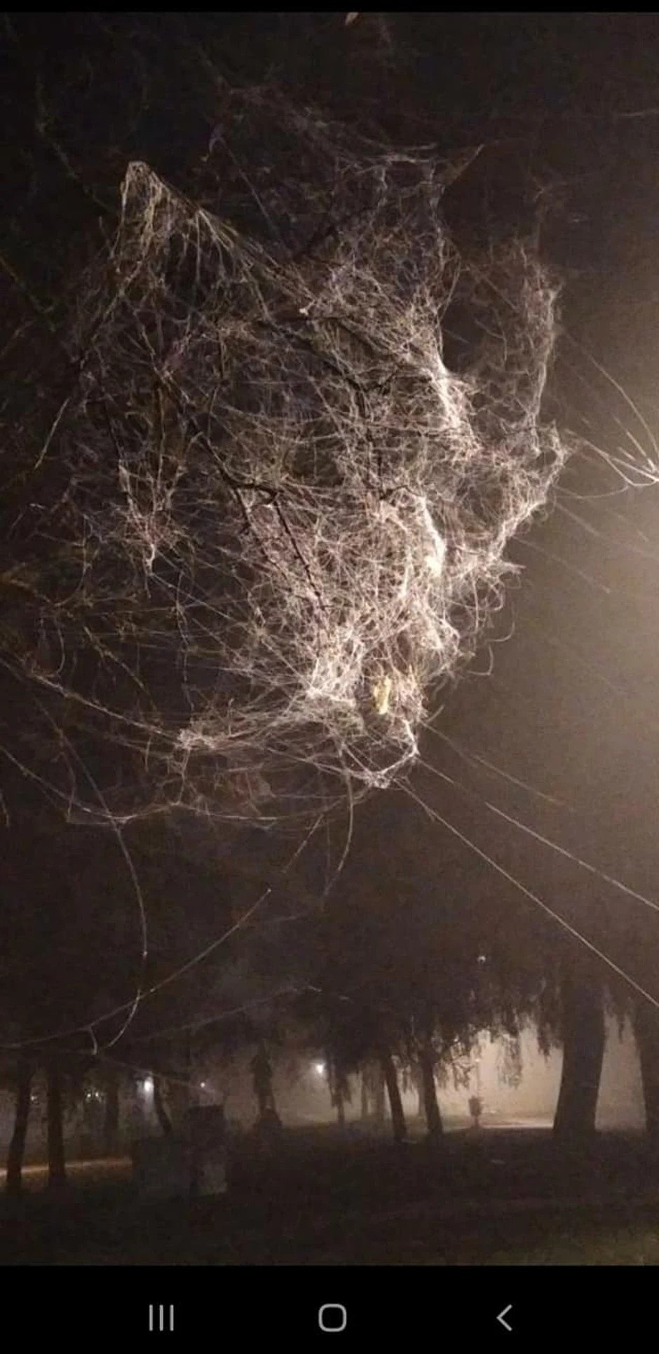 Novogodišnja rasveta ove godine sa zakašnjenjem stiže na gradske ulice, lišća na granama je sve manje, ali se neobični "ukrasi" ovih dana mogu videti na drveću. Grane su ni manje ni više "okićene" paučinom koja je toliko gusta da biste na prvi mah pomislili da je u pitanju dekoracija za Noć veštica.