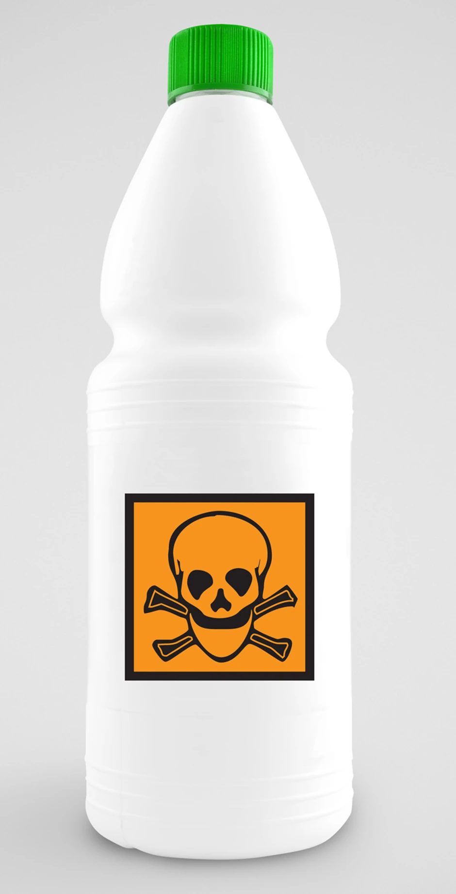 Hlorovodonična kiselina je bezbojna, zadimljena tečnost, zagušljivog mirisa, koja se koristi u industriji, hemiji, a i u domaćinstvu za beljenje, zbog čega predstavlja potencijalnu opasnost za zadesna i samoubilačka trovanja. Letalna doza koncentrovane kiseline je oko 15g.