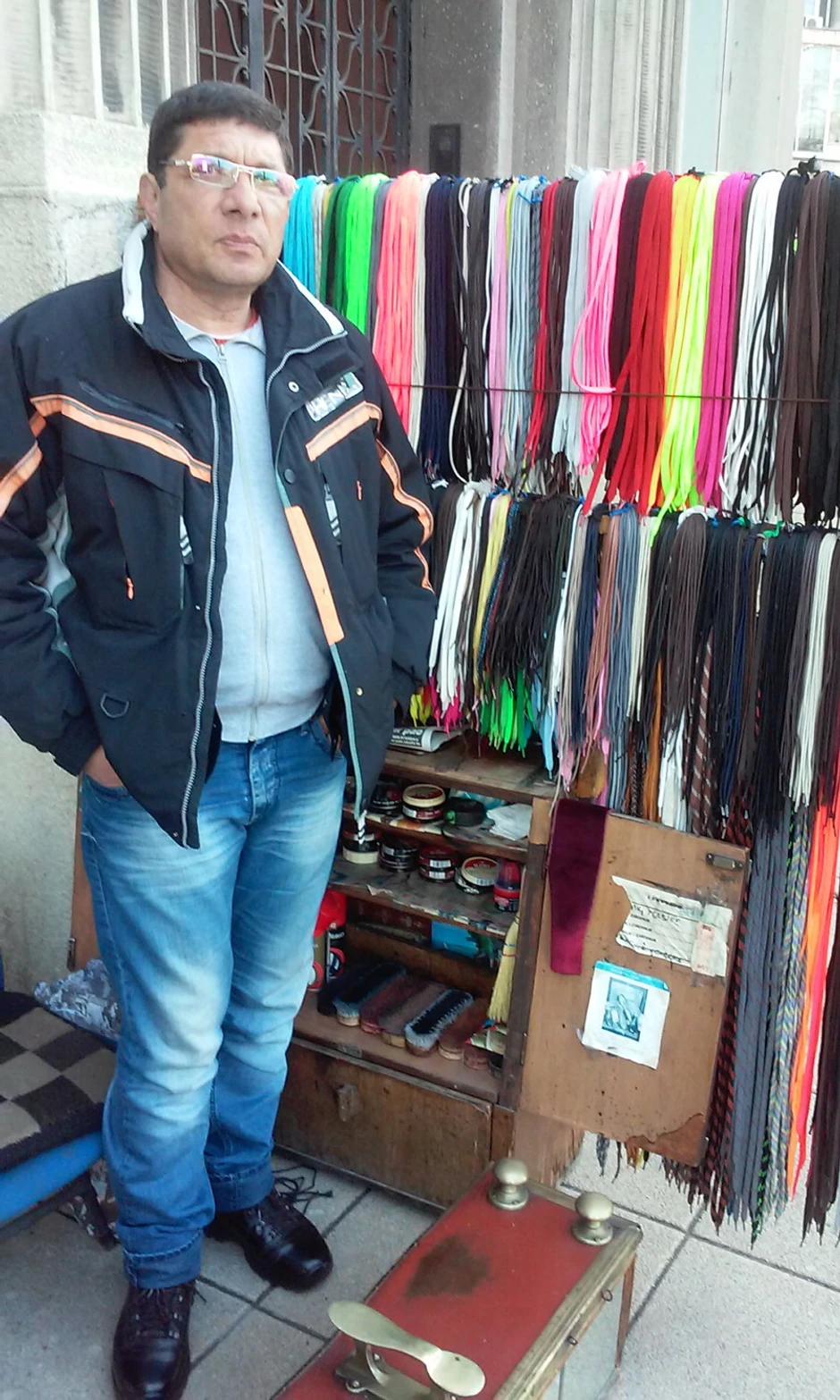 Čini se da je retko koji prolaznik uopšte i vidi, a pažljivo složene četke, kreme i crvena hoklica tek ponekad obave svoju svrhu.