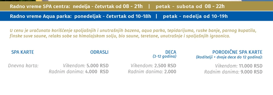 Ukoliko povedete i decu, jer ovo kupalište nudi zanimljive aktivnosti i za najmlađe, cena jedne karte je 2.000 dinara, dok je ulaznica za celu porodicu 11.000 dinara. Iako naizgled deluje da je ovo zaista preterivanje i da isto može da se dobije i za mnogo manje, izgleda da je to samo varka za posetioce, i da se zapravo naplaćivanje na kašičicu košta mnogo više.