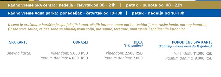 Ipak, nije ovo jedino kupalište koje drži visoku cenu ove paklene sezone. Nadomak Beograda, u sklopu jednog hotela nalazi se akva-park gde dnevna karta za jednu osobu iznosi 5.000 dinara vikendom, dok je radnim danima za 1.000 dinara niža.