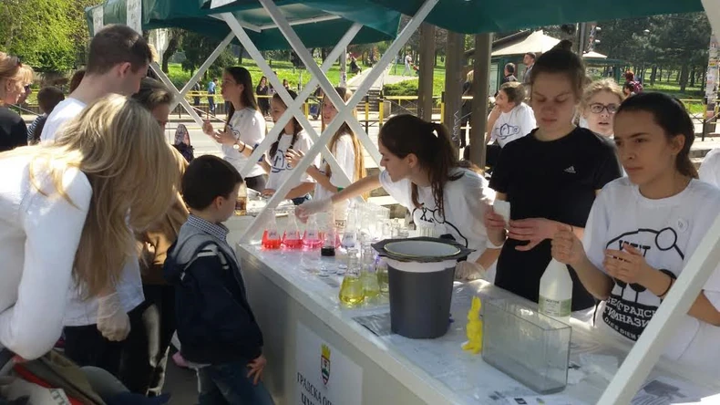 Srednjoškolci su na štandovima svojim mlađim drugarima, ali i mamama i tatama, pa čak i bakama i dekama, predstavili ples plamena, kako izgleda hemijska bašta, trikove kako se jaje može ubaciti u flašu, odnosno saksija pustiti a da se ne razbije. Takođe, posetioci su mogli da provere i koliko su smireni...