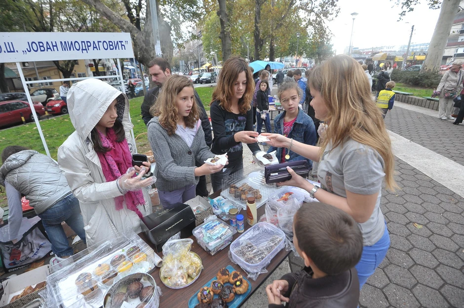 Stotinjak dece školskog i predškolskog uzrasta stajalo je danas za štandovima njihovih škola i vrtića i nudilo prolaznike i roditelje drugara svojim slatkišima.