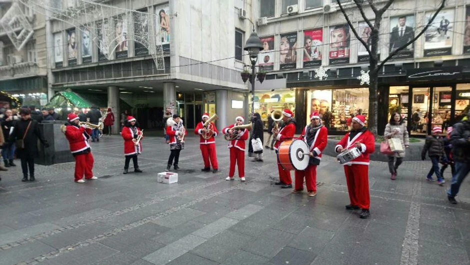 Ljudi koji su jurili da pokupuju poslednje sitnice za večeras, oduševljeni prizorom, ipak su zastali da oslušnu poznate melodije. Prolaznike je dodatno razgalilo što je veseli i kreativni orkestar bio obučen u skladu sa prazničnom euforijom.