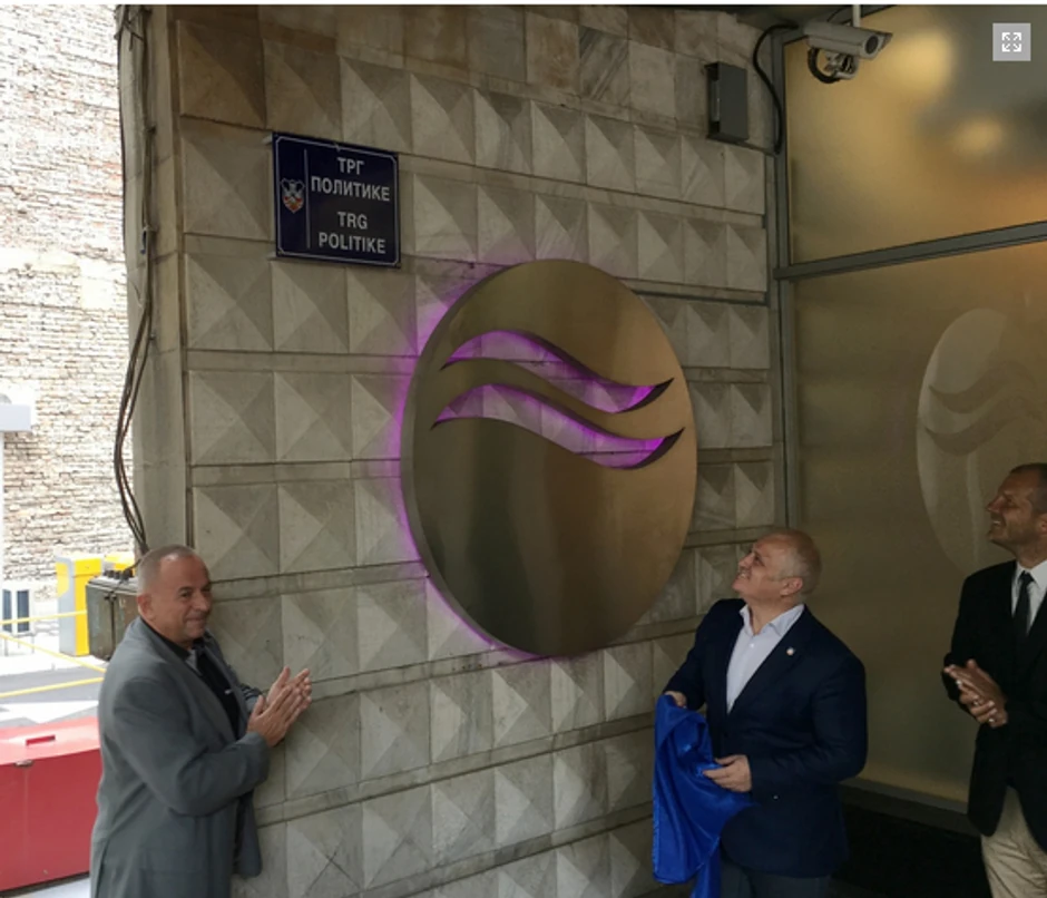 Gradski menadžer Goran Vesić danas je sa vršiocem dužnosti glavnog i odgovornog urednika Politike Žarkom Rakićem simbolično otkrio tablu sa novim nazivom - Trg Politike ispred zgrade te medijske kuće u Makedonskoj ulici.
