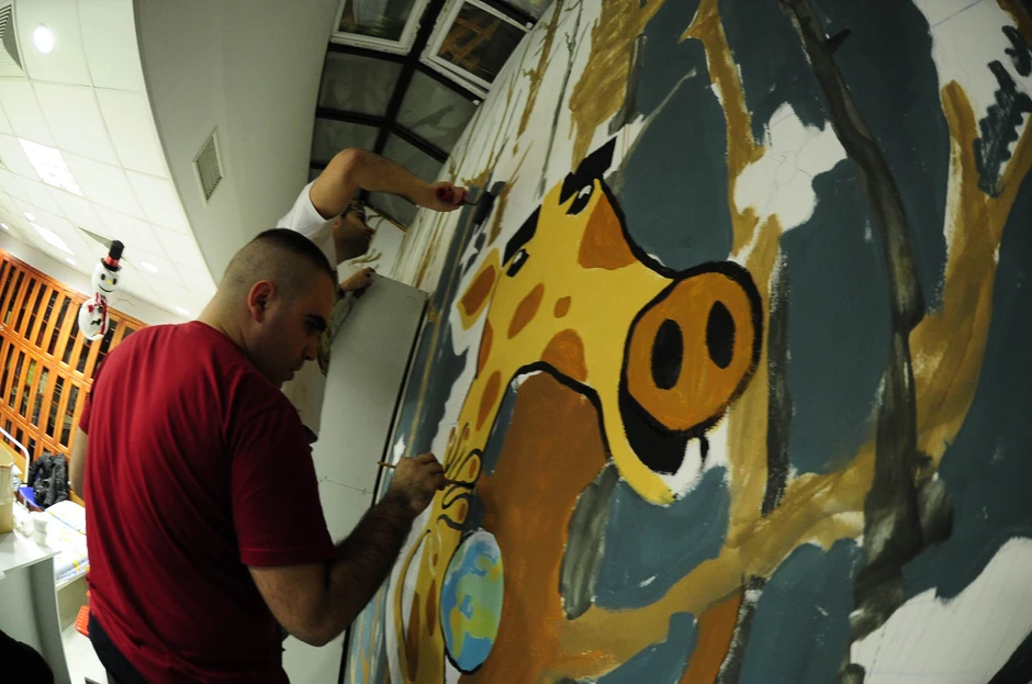- Volim da slikam žirafe jer one imaju najveće srce, anatomski ali i figurativno. Bio sam kao mali pacijent ove bolnice i jedan od liftova imao je na zidovima "Diznijeve" junake što me je oduševljavalo svaki put kada sam se vozio njime. Nažalost, ti liftovi su sada ofarbani sterilno, ali dogovorili smo se da i tu unesemo malo boja - priča Andrej.