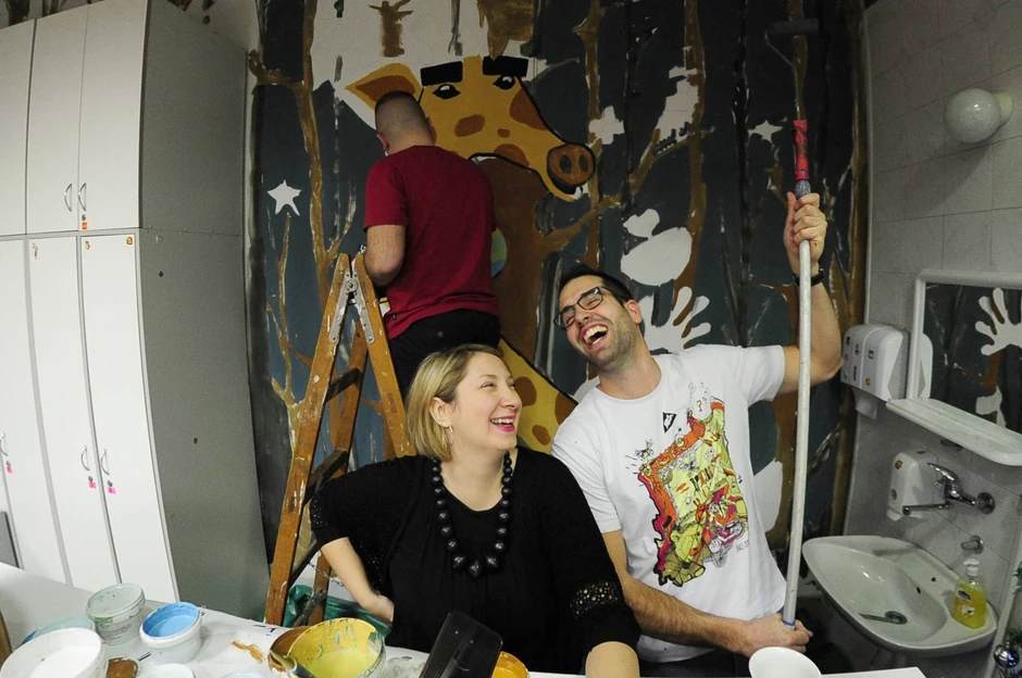 Sandra je taj poziv podelila na društvenim mrežama, a od prošle subote ovo su u delo sproveli muralista i arhitekta Andrej Josifovski poznatiji kao "Pijanista" i arhitekta Bogdan Đokić "Brva". Zid u dnevnoj neurološkoj bolnici od sada krasi drveće i žirafa, što nosi i posebno značenje muralisti Andreju.