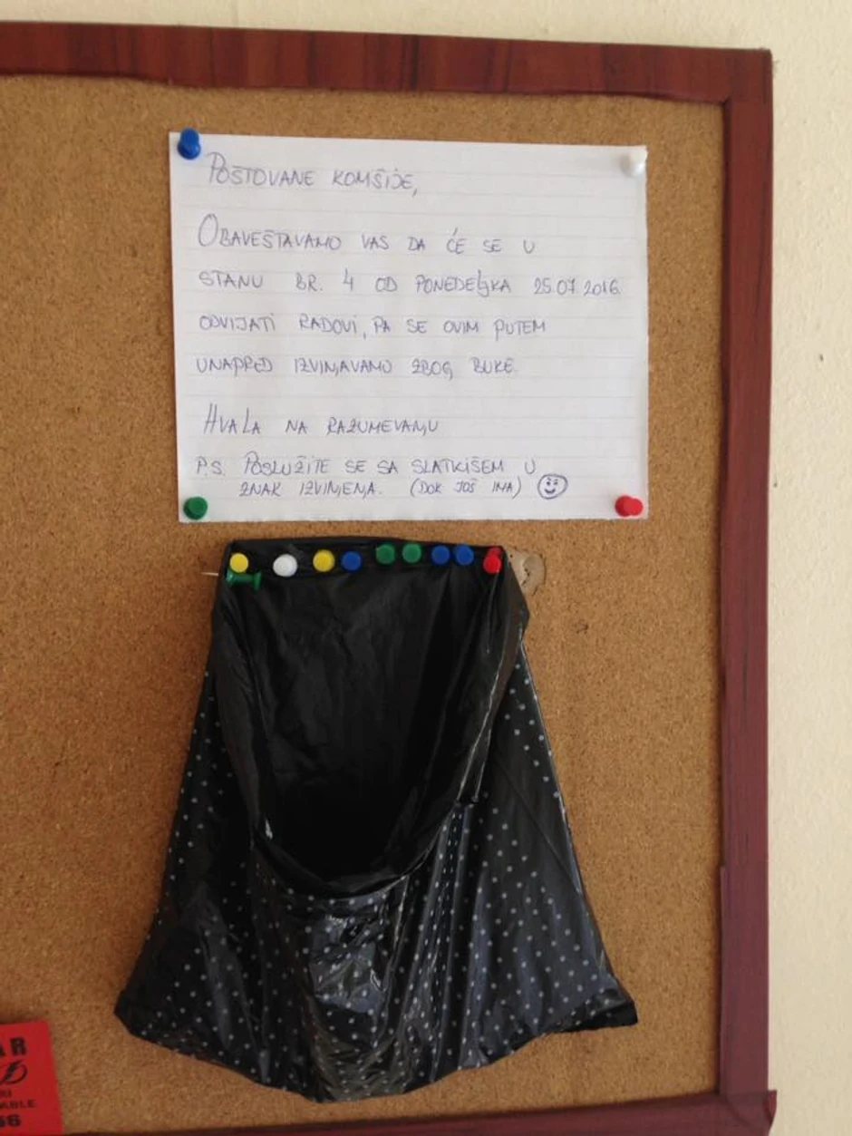 Da ima dobrih komšija pokazuje i ovakav primer iz jedne od zgrada u prestonici. Ovakvo obaveštenje u holu retko kome padne lako, ali uz prstohvat pažnje, lako se proguta kada stigne u slatkom omotu.