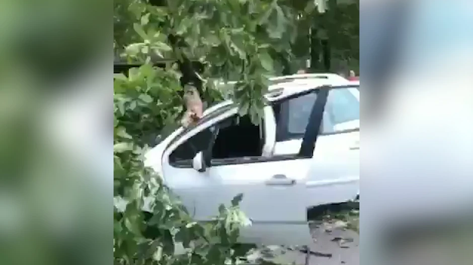 Na Avalskom putu, između skretanja za Zuce i Vrčin, dogodila se nezgoda kada je na automobil u pokretu palo drvo.