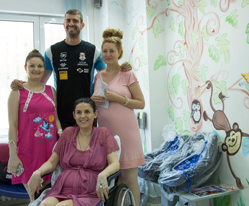 Dušan Borković, dvostruki prvak Evrope u automobilizmu uručio je danas, u okviru akcije "Bezbednost nikad nije na odmoru", auto-sedišta majkama prvorotkama u GAK Narodni front.
