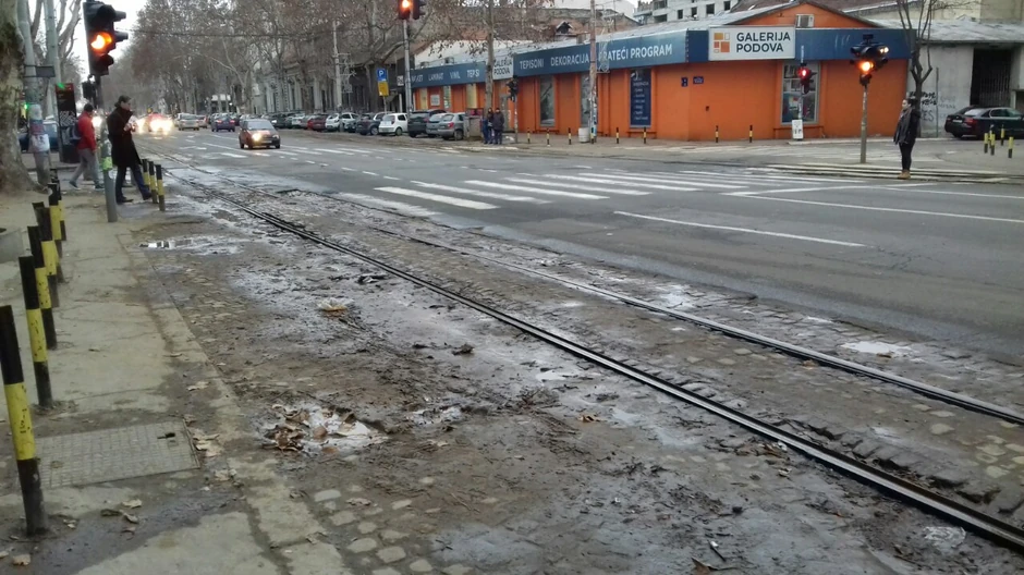 Nakon rupa na ulicama i mostovima, nastalih najverovatnije zbog soli posipane protiv leda, na prestoničkim saobraćajnicama pojavio se i dodatni problem: naglo otopljavanje snega dovelo je i do stvaranja blata većih bara u rupama. Fotografije koje ilustruju takav prizor zabeležene su u Ulici cara Dušana na Starom gradu.