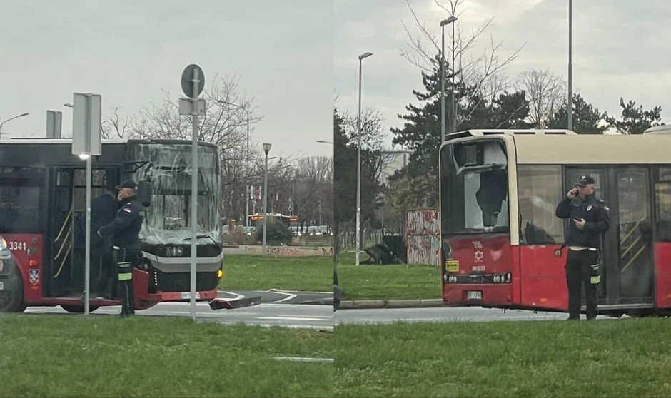Na jednom od autobusa je puklo staklo na šoferšajbni, dok je na drugom oštećen zadnji deo.