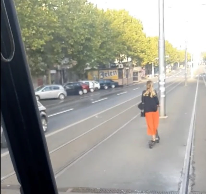 Međutim, u Fejsbuk grupi "Vozači tramvaja i ostalo GSP osoblje" osvanuo je snimak, koji je okačio jedan tramvajdžija, a na kome se vidi vozač električnog trotineta kako pretiče tramvaj, a sve zbog crvenog svetla. Kako kaže vozač u komentaru, "jurimo.. ali je brža, vozi na crveno, a ja neću".