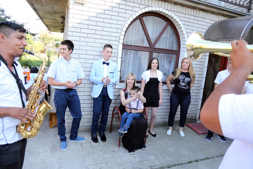 Pančevački desetočlani orkestar "Tornado" došao je ispred kuće porodice Đurić u Borči i zasvirao, a prema starom srpskom običaju, dočekani su i kumovi na kapiji. Vesela porodica i prijatelji su zaigrali uz trubače, sa lica nisu skidali osmehe, a pala je i koja suza radosnica.