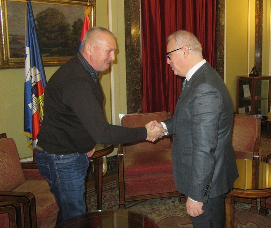 Prijemu u Starom dvoru prisustvovali su direktor JKP "Parking servisa" Andrija Čupković i rukovodilac Međunarodnog teretnog terminala Predrag Marković.