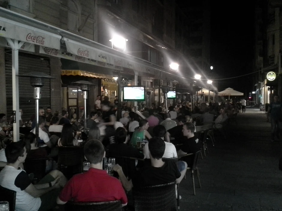 Kroz čitavu Knez Mihailovu i okolne ulice čuju se uzvici uzbuđenja ali i razočaranja, a mnogi prolaznici, poneseni ovom euforijom posmatraju ekrane čekajući prvo slobodno mesto.