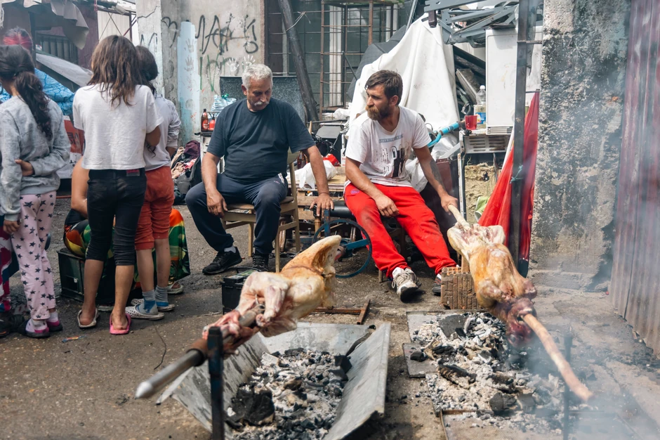 I u malenom romskom naselju na Tošinom bunaru u blizini železničke stanice takođe je odjekivala muzika i okretalo se jagnje na ražnju.