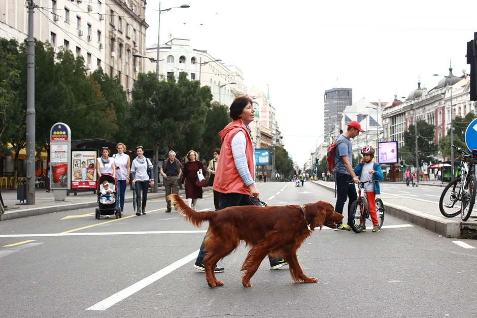 - Pešačka nedelja je super ideja. Odlučio sam da iskoristim priliku i prošetam glavnom ulicom od Slavije do Trga. Poveo sam i decu koja voze trotinet i rolere - kaže za "Blic" Nebojša Atanacković.
