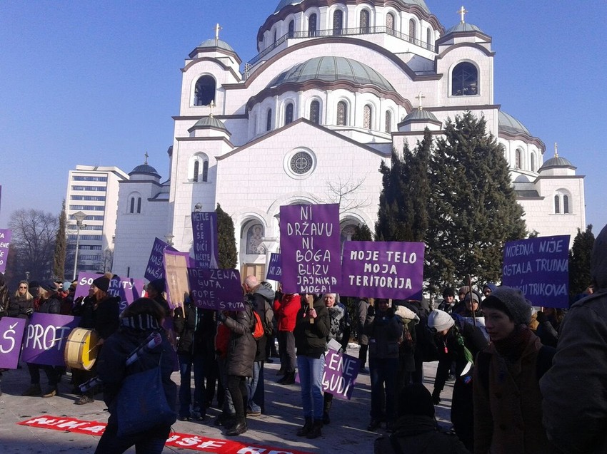 Pojedine žene u koloni bile su opremljene i megafoina i dobošima, a čuju se uzvici poput: "Solidarne sa svim ženama" i "Svega mi je dosta, i ckve i boga. Sloboda ženama".