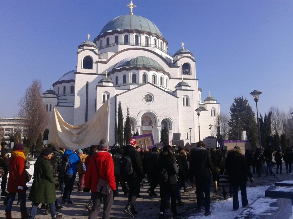Kako javlja naš reporter sa lica mesta, na skupu je bilo oko 150 učesnika koji su od Pionirskog parka krenuli Ulicom kneza Miloša, zatim Nemanjinom do Slavije i potom dalje prema Hramu svetog Save.