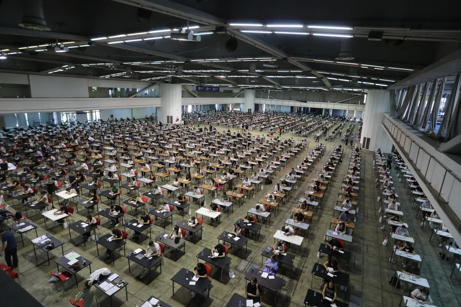 Danas je drugi dan polaganja prijemnih ispita na za upis na fakultete Univerziteta u Beogradu. Veliki broj kandidata koji danas polaže prijemni na jednom od najpopularnijih fakulteta, Fakultetu organizacionih nauka (FON) okupio se na Beogradskom sajmu gde se zbog velikog broja prijavljenih kandidata zakupljuju ovakve sale za polaganje. To je godinama praksa i za ostalim najpopularnijim fakultetima u Beogradu.