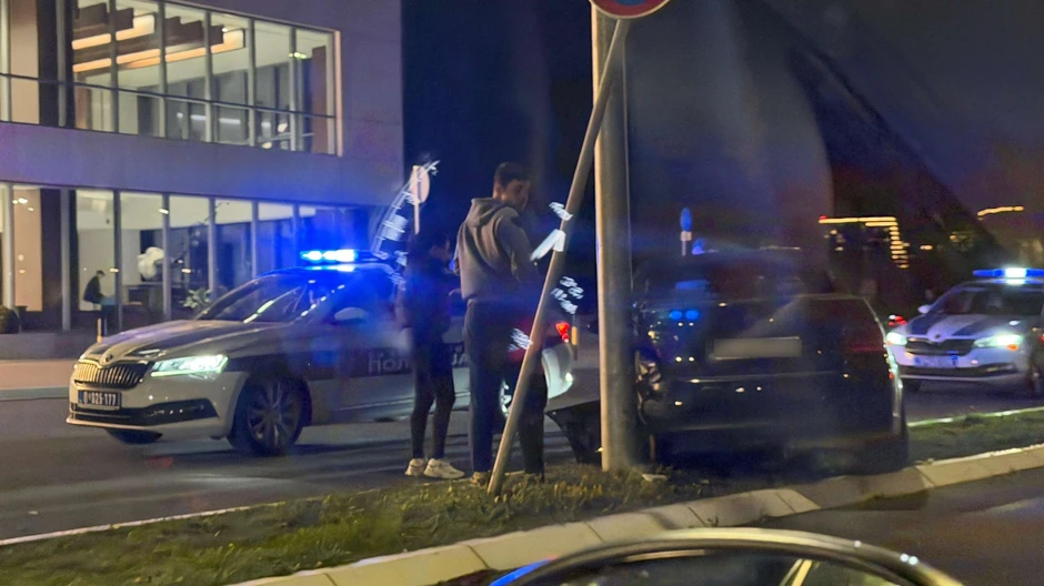Automobil je završio na ostrvu i udario u banderu, a saobraćajni znak je oštećen
