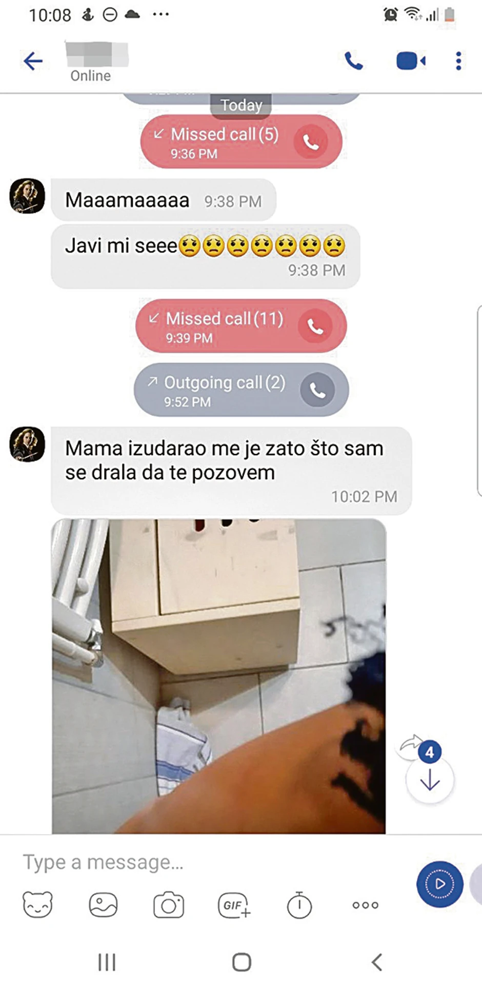 Potom je, što skrinšot koji objavljujemo pokazuje, 11 puta zvala majku. Majka je reagovala posle 13 minuta i pozvala devojčicu, ali ona se tada nije javljala. Poslala joj je jezivu poruku: